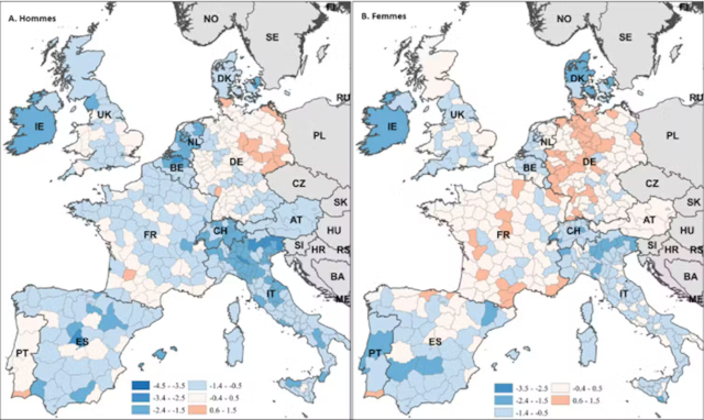 L'étude, menée par Florian Bonnet de l’Ined et ses collègues du BiB (Federal Institute for Population Research) et du CNRS, a porté sur 450 régions d’Europe occidentale et près de 400 millions d’habitants entre 1992 et 2019.